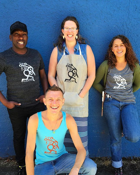 George took over the grocery portion and slowly, slowly increased its size as other tenants moved out. Stocking this little natural food store involved weekly trips to Portland to purchase nuts, produce, and cheese; trips to California for dried produce and juice (from Mrs. Knudsen); and soap purchased directly out of Dr. Bronner’s garage. The store's shelves provided some of the first retail space for local favorites such as Toby's Family Foods and the Springfield Creamery.